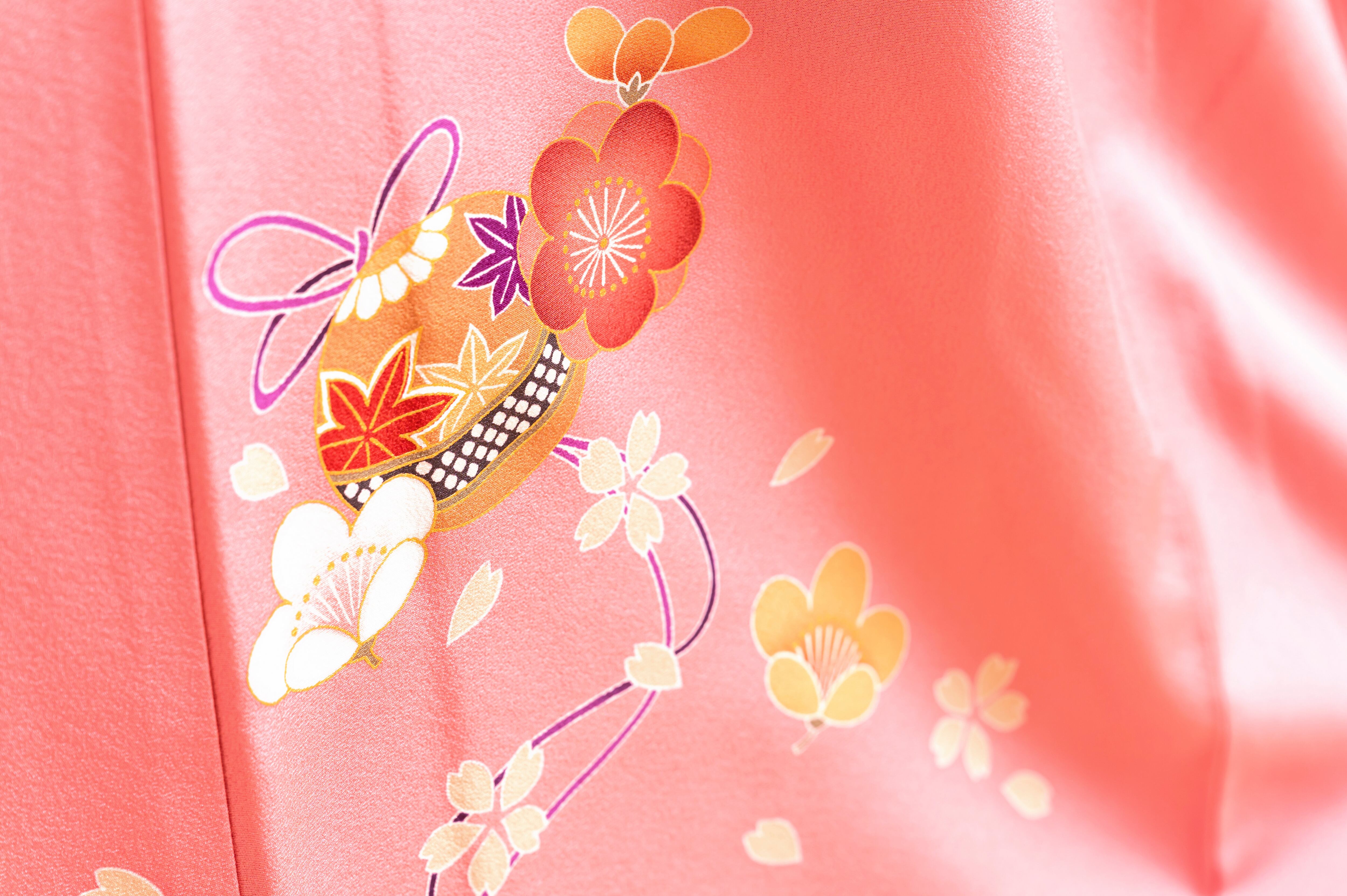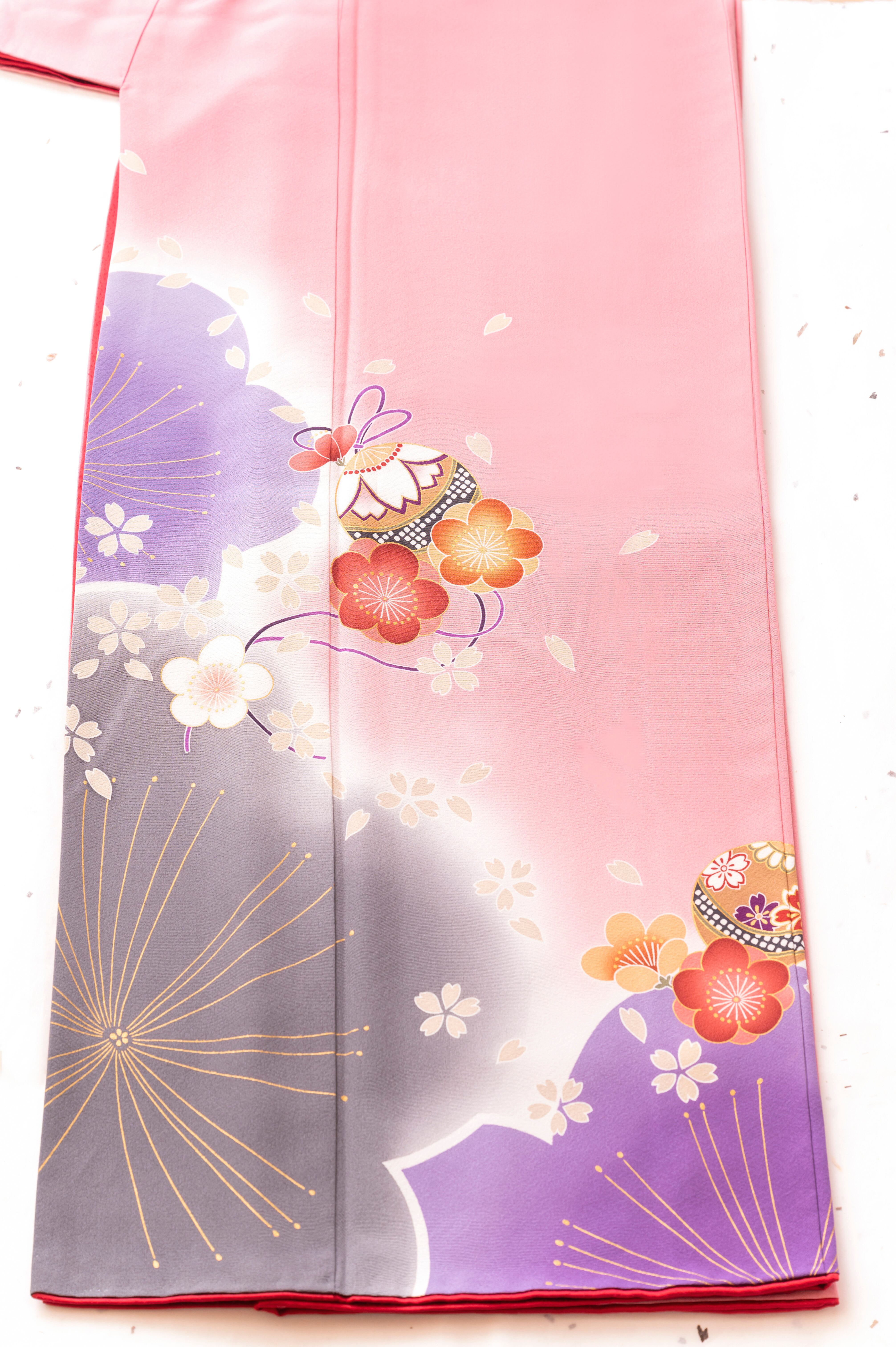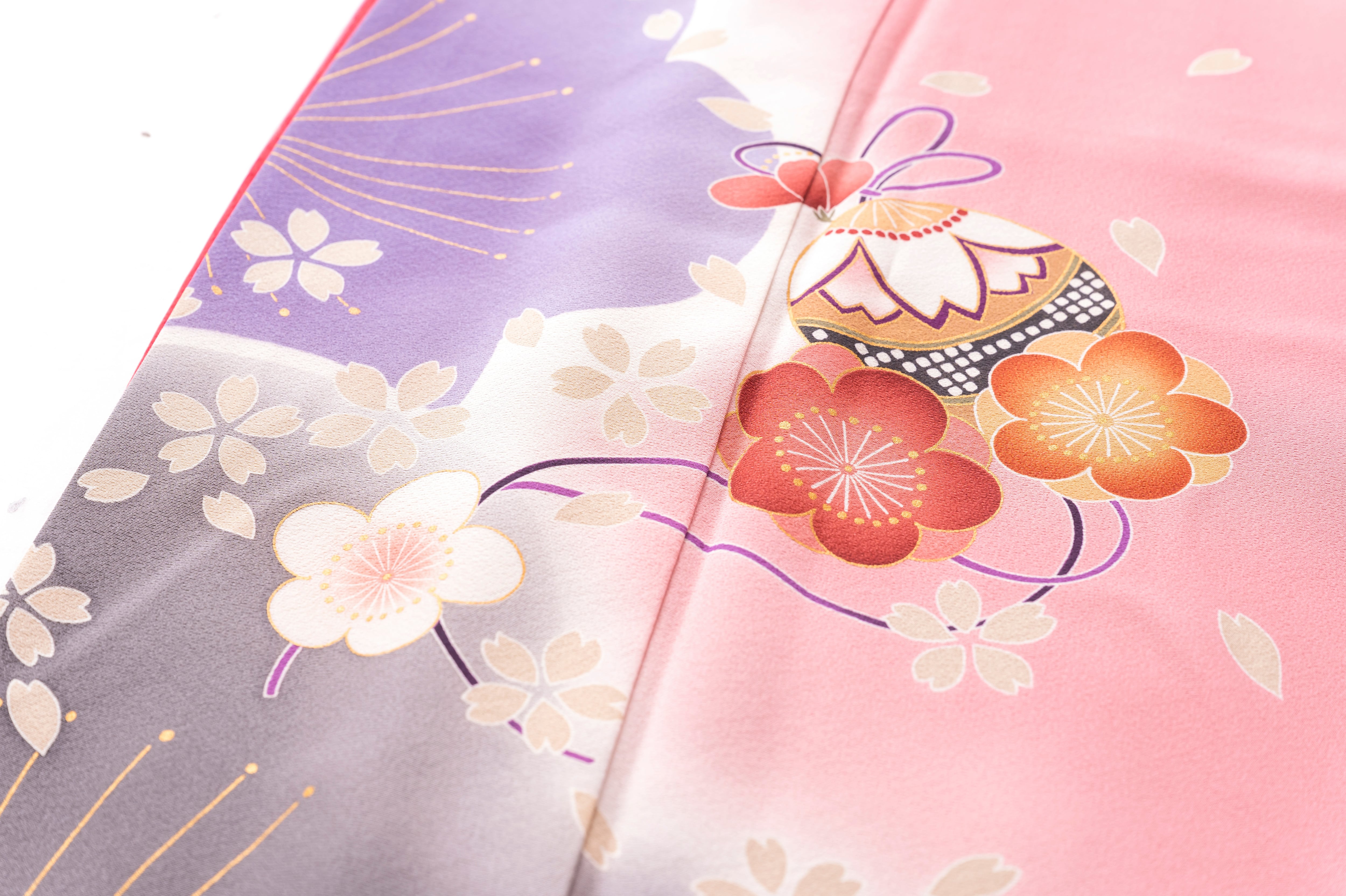古典で動きのある鞠模様と可愛らしい梅模様柄