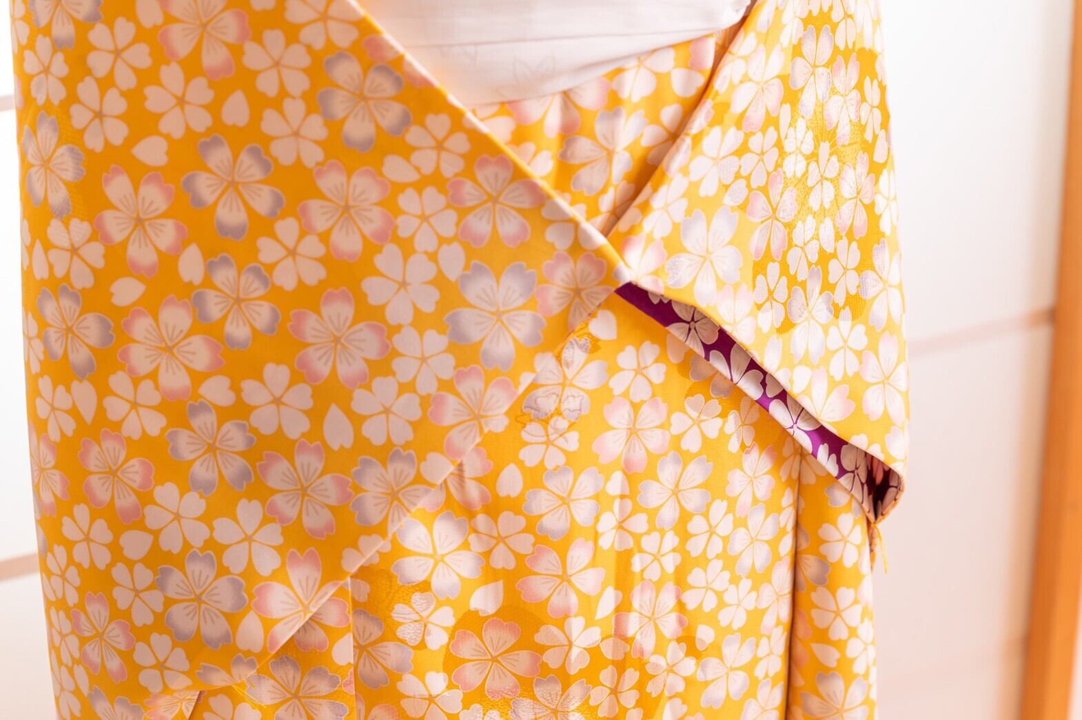 長襦袢もたもとの振り側や袖口から見える、紫色が効き色に♪