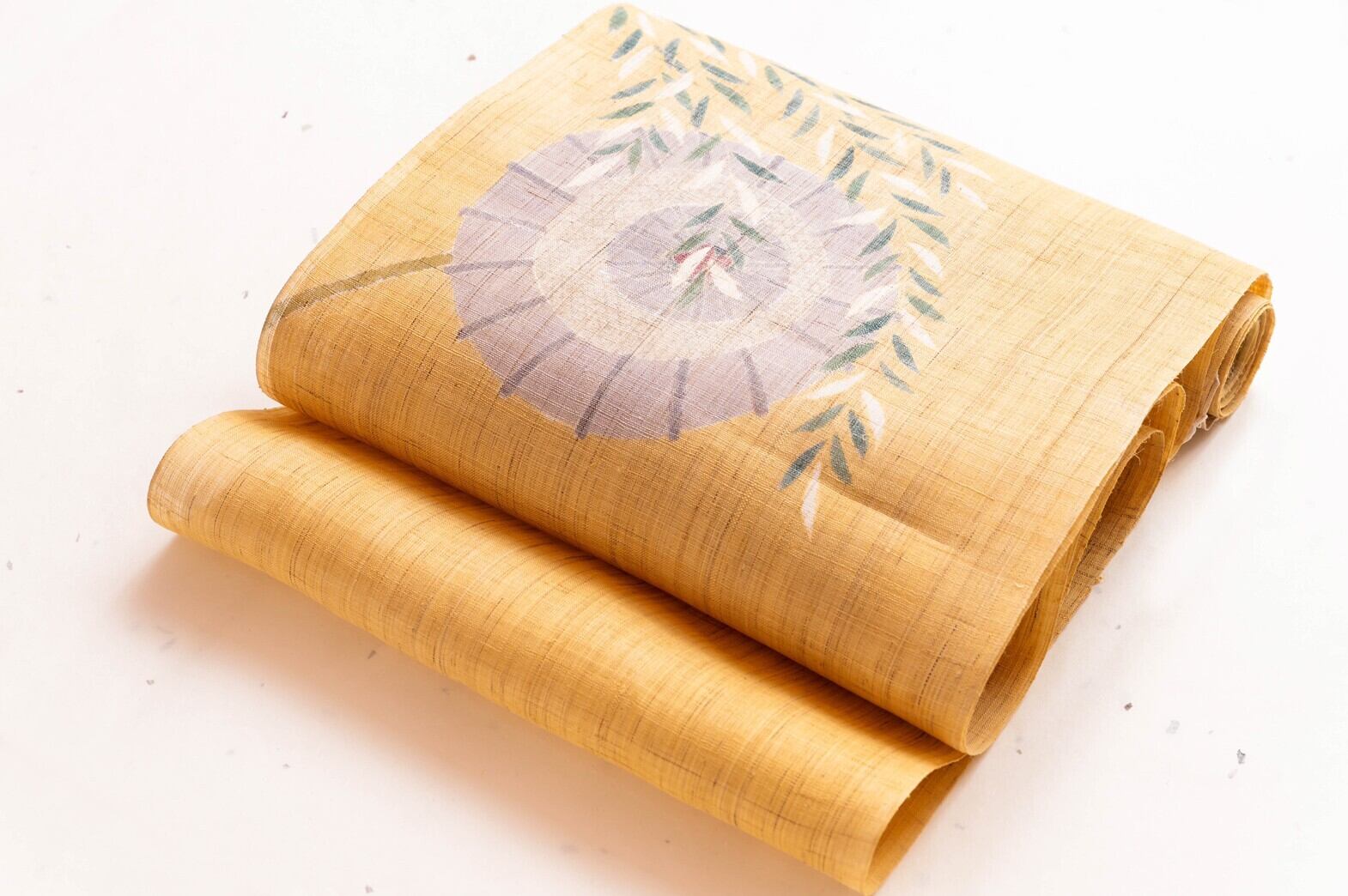 麻地手描き染め◆九寸名古屋帯◆しだれ柳に傘(お誂え込み)